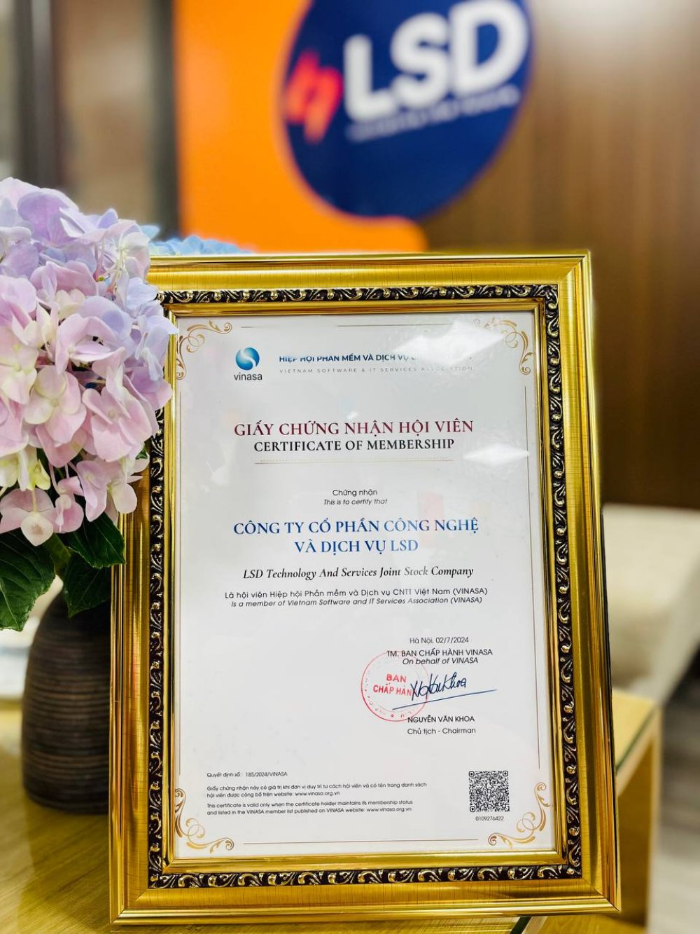Hòa chung với những hoạt động hân hoan chào đón sinh nhật công ty, vào đầu tháng 7/2024 Công ty cổ phần Công nghệ và Dịch vụ LSD đã chính thức khẳng định tên tuổi và vị thế công ty hơn khi được công nhận là Hội viên Hiệp hội Phần mềm & Dịch vụ CNTT Việt Nam (VINASA)